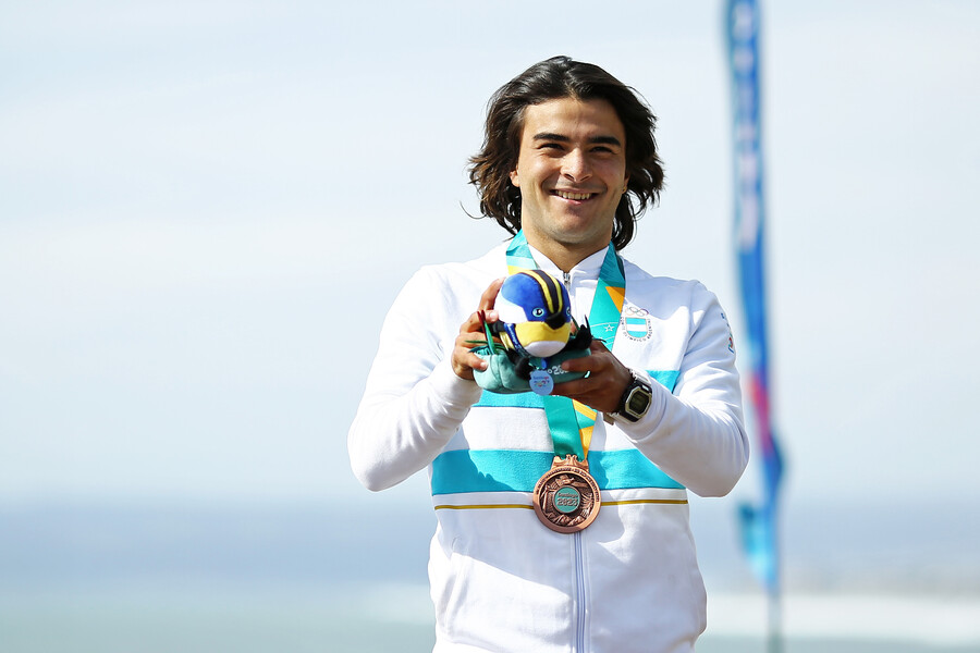 Se trata de Bronce en la modalidad SUP del Surf en la figura de Santino Basaldella que acompañó en el podio al norteamericano Baxter y al peruano Delgado.