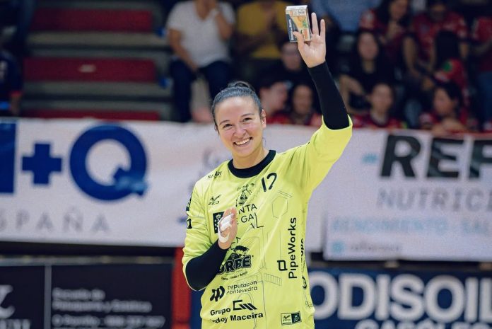 El partido de ida fue en O Porrino y allí se transformó en figura y en leyenda Rosalez porqué, cuando su equipo la pasaba mal, contuvo un penal clave que inyectó de ánimo a sus compañeras que culminaron logrando el empate 29-29.