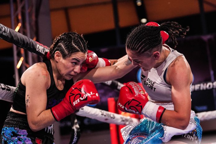 Fue un combate que cumplió con sus diez asaltos pactados, con un trámite parejo en donde ambas castigaron.