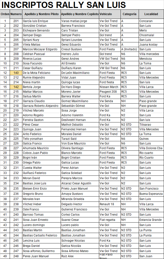 La Federación Sanluiseña confirmó los lista definitiva de los pilotos que estarán participando del Rally de San Luis en el marco de la sexta fecha del Campeonato Provincial de la especialidad.