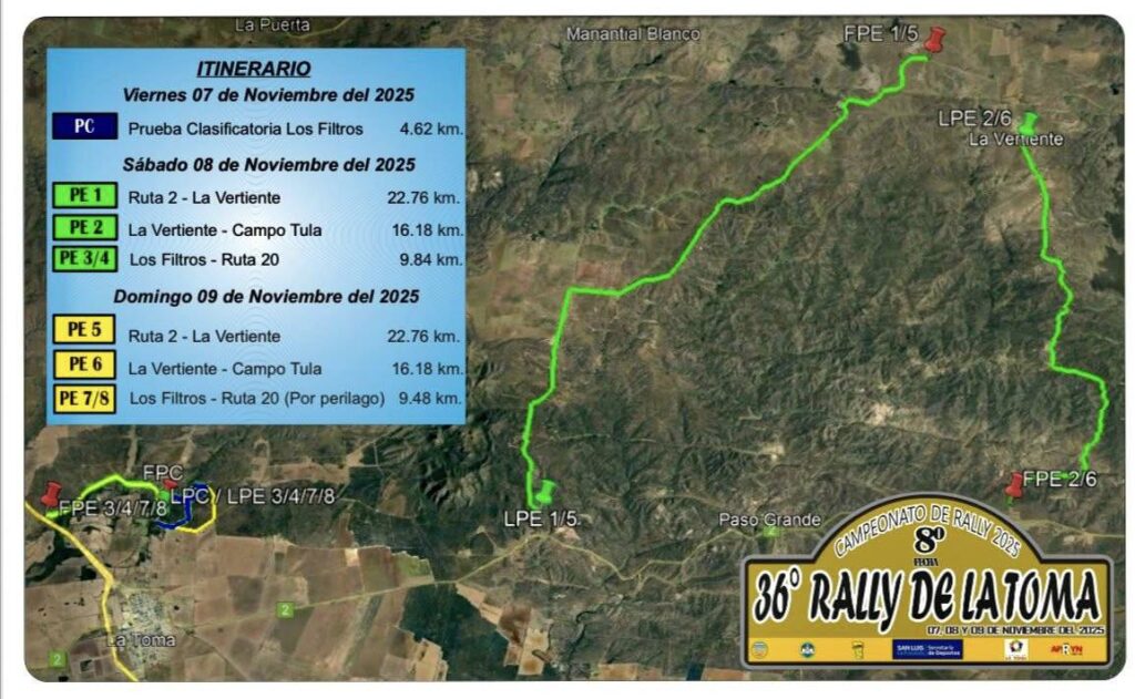 La 36° edición del Rally de La Toma, penúltima fecha del Campeonato Provincial de la Especialidad, ya tiene su recorrido confirmado.