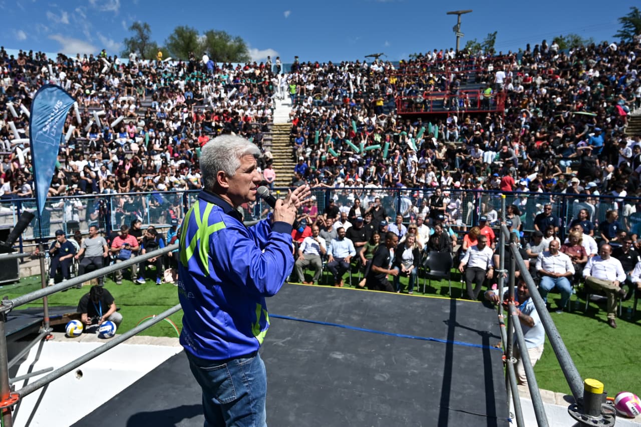 “Estamos clausurando los Intercolegiales 2025 con un gran éxito, tanto en participación de chicos como de escuelas. Agradezco a la secretaría de Deportes, a los profes y a todos los que hicieron posible este trabajo en cada rincón de la provincia. El deporte es sinónimo de salud, compañerismo y respeto”, expresó el gobernador Claudio Poggi, quien al finalizar el acto subió a la tribuna, saludó a los chicos y se sacó fotos con todos los que le pidieron.